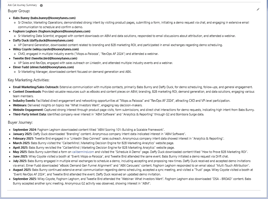 Once these steps are complete, please notify your Technical Account Manager (TAM) at CaliberMind. They will complete the final configuration to begin pushing Buyer Journey data to your new Salesforce fields.